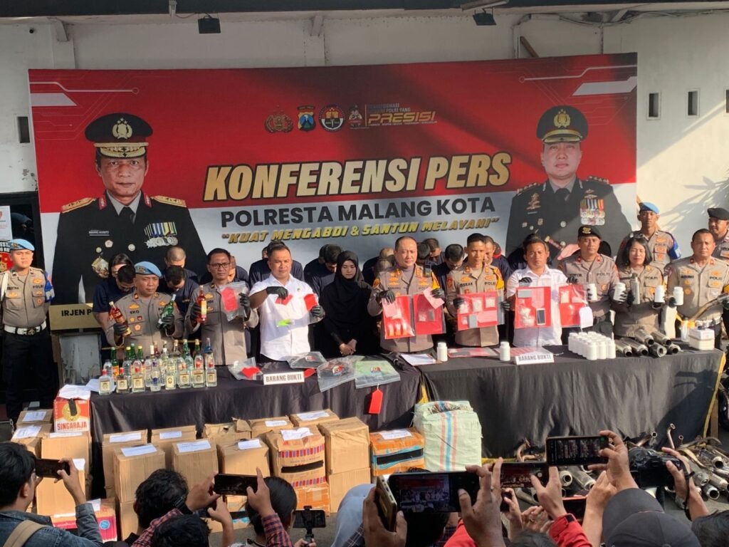 “Sepanjang tahun 2025 tercatat 1.364 gangguan kamtibmas, turun drastis dari 2.340 kejadian pada 2024. Ini menandakan Kota Malang semakin aman dan kondusif,” tegas Nanang.