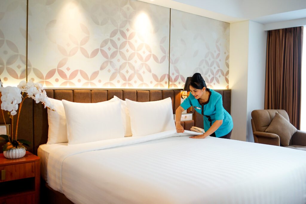 Keseharian staf Atria Hotel Malang yang terlihat cermat merapikan tempat tidur atau menata rangkaian bunga segar di area lobi menjadi gambaran nyata dari filosofi tersebut. Aktivitas sederhana ini merepresentasikan dedikasi tim dalam memastikan setiap tamu disambut dengan suasana yang rapi, bersih, dan penuh kehangatan sejak langkah pertama memasuki hotel.