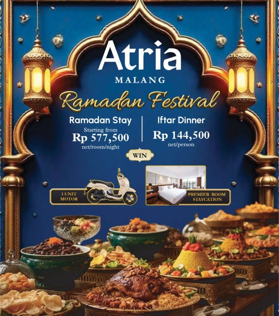 Menariknya, sepanjang bulan Ramadhan, Atria Hotel Malang juga menghadirkan program doorprize spesial. Tamu berkesempatan memenangkan 1 unit sepeda motor sebagai hadiah utama yang akan diundi di akhir periode Ramadhan, serta voucher menginap Premiere Room yang diundi setiap minggu.
