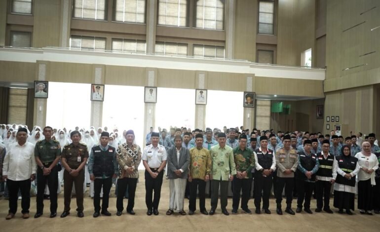 CITILIVE – Jelang keberangkatan ke tanah suci, ratusan Calon Jamaah Haji CJH asal Kota Batu mengikuti prosesi pelepasan keberangkatan di Gedung Graha Pancasila, Balai Kota Among Tani, Rabu (7/6) pagi.