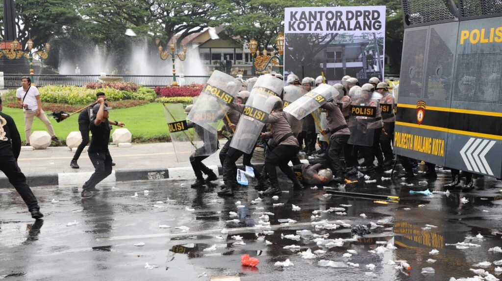 Kota Malang Mendadak Riuh, Aparat dan Massa Terlibat Aksi di Balai Kota
