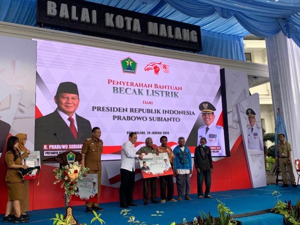 CITILIVE – Pemerintah Kota Malang memastikan seluruh pengemudi becak yang masih aktif beroperasi di wilayah Kota Malang akan menerima bantuan becak listrik secara bertahap. Kepastian tersebut disampaikan Wali Kota Malang Wahyu Hidayat saat penyerahan 200 unit becak listrik bantuan Presiden RI Prabowo Subianto di Kota Malang, Selasa (20/1/2026).