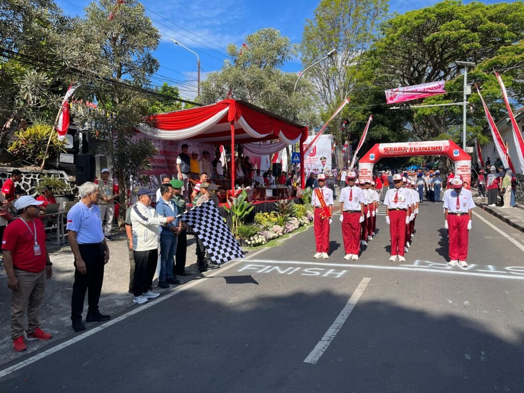 CITILIVE, BATU – Wali Kota Batu, Nurochman, secara resmi memberangkatkan Lomba Gerak Jalan Tepat Tingkat SD/MI se-Kecamatan Junrejo dalam rangka memperingati HUT ke-80 Kemerdekaan RI, Rabu (27/8/2025). Start dimulai dari depan Kantor Kecamatan Junrejo dengan rute sejauh 4,3 kilometer yang ditempuh sekitar 51 menit. Sebanyak 21 sekolah dasar dan madrasah ibtidaiyah ambil bagian dalam lomba tersebut. Acara diawali penampilan drumband Poltekad TNI AD yang memperlihatkan kedisiplinan prajurit sebagai teladan bagi para peserta.
