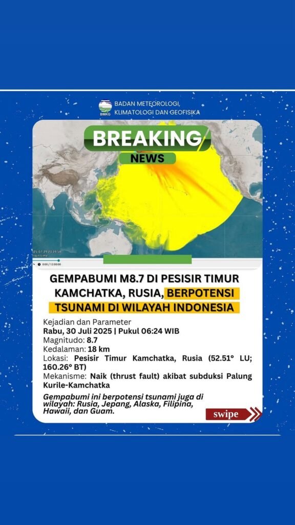 BMKG juga mengingatkan bahwa potensi gempa bumi besar di kawasan Pasifik seperti Kamchatka dapat memicu tsunami lintas wilayah. “Ini menjadi pengingat bahwa sistem deteksi dini dan kesadaran publik tetap harus terus diperkuat,” tutup Daryono. (Ab)