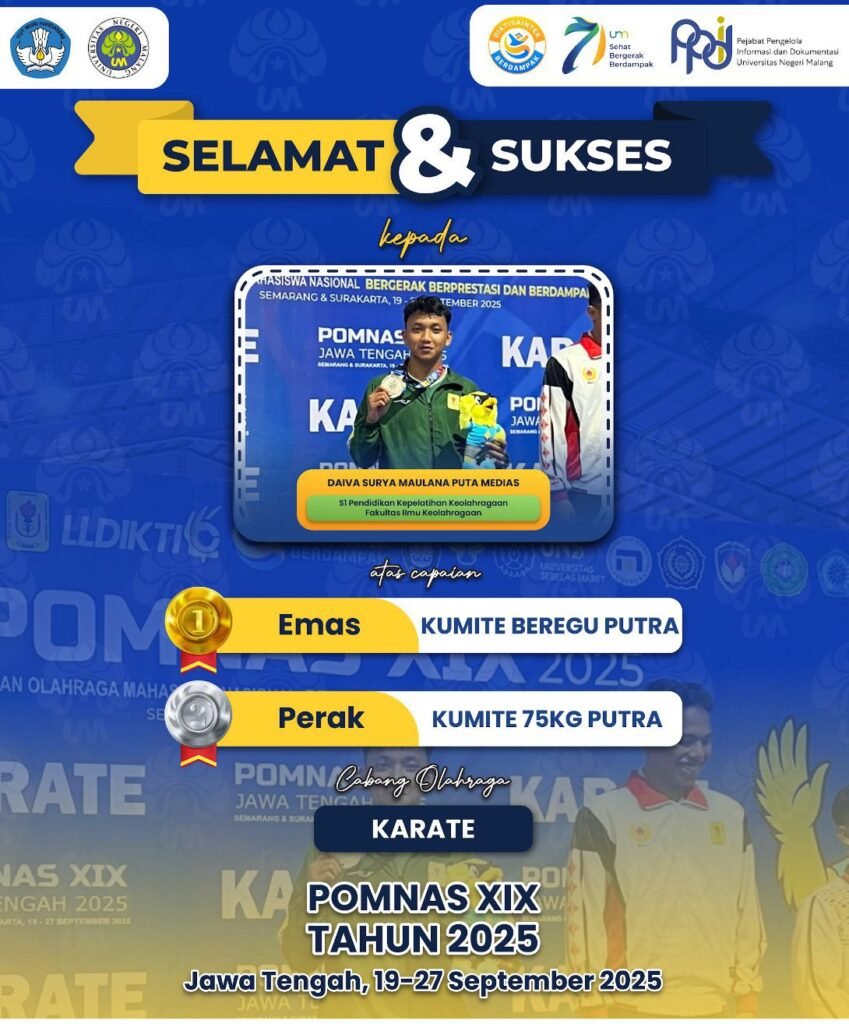 “Prestasi ini adalah bukti nyata bahwa mahasiswa UM tidak hanya unggul dalam bidang akademik, tetapi juga mampu bersaing di level nasional melalui olahraga. Kami bangga dan akan terus memberikan dukungan agar mahasiswa dapat mengembangkan potensinya di berbagai bidang,” ujar Hariyono dalam keterangannya, Sabtu (4/10/2025).